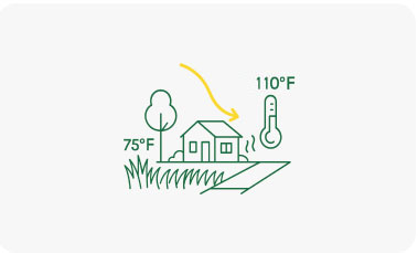 Trees, shrubs, and grass cool down surrounding areas, reducing the urban heat island effect. Roughly 50 percent of the heat striking a turf area is eliminated by transpiration. When the temperature of the sidewalk is 100°F, the temperature of the adjacent turf remains near 75°F.